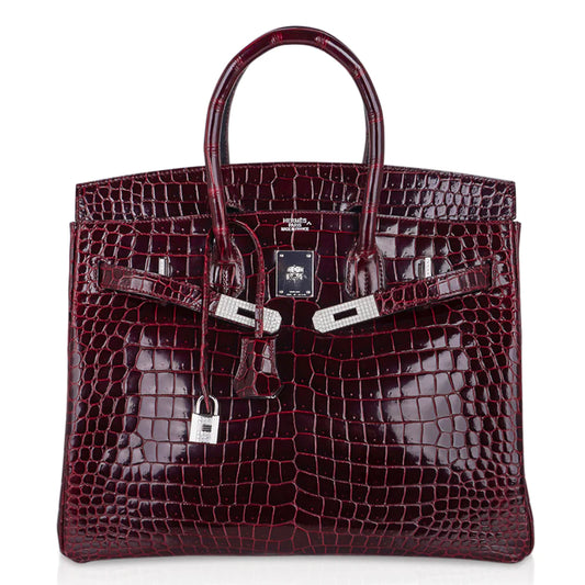 Birkin 35 Diamond Bordeaux Porosus Crocodile BagRegular price $295,680.00 USDRegular priceUnit price per-