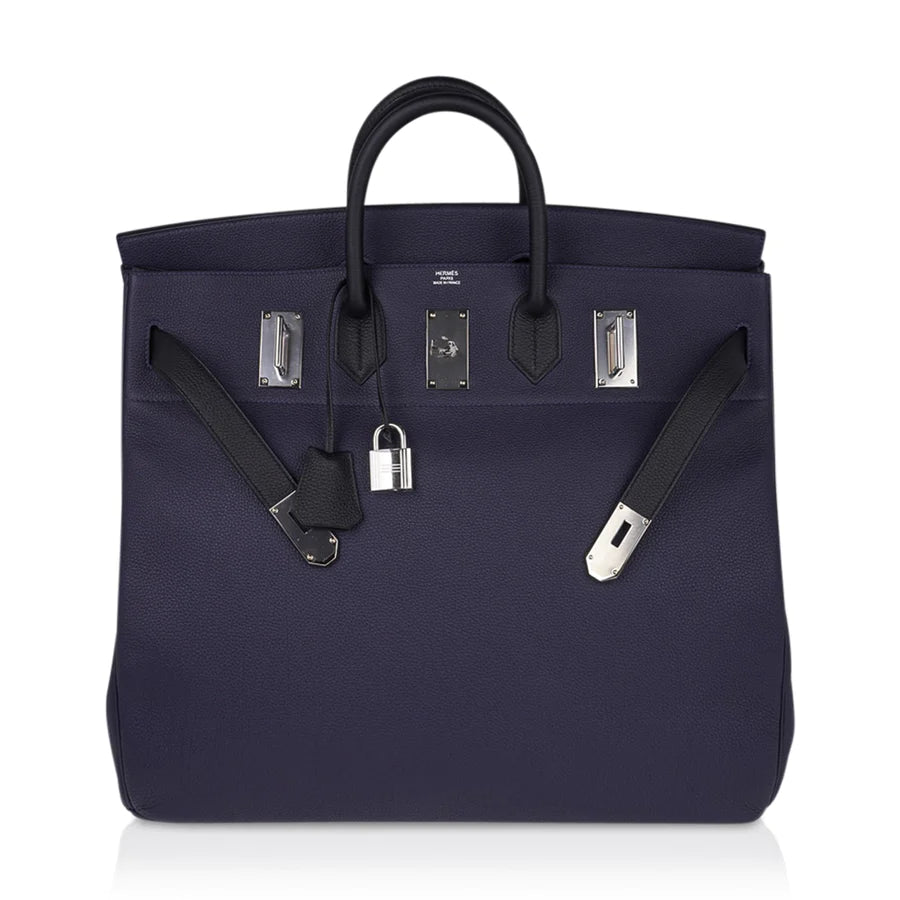 Rare bi-colour Blue Nuit and Black Hermès Haut à Courroies (HAC) 50 bag.